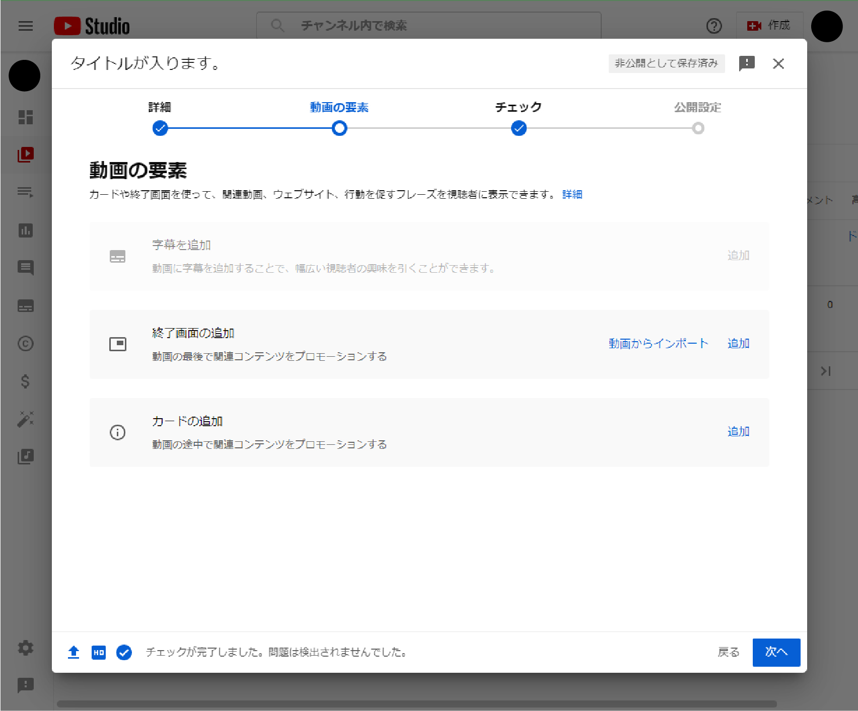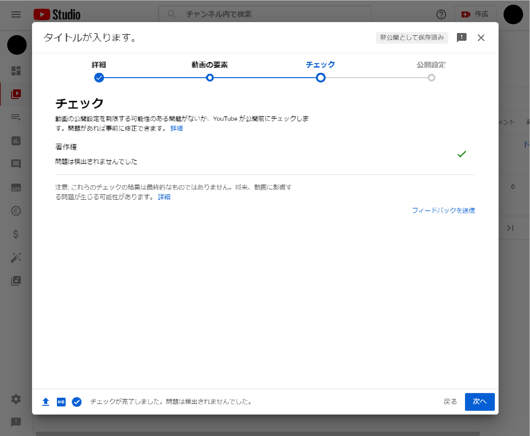 問題が検出された場合にはアップしようとしている動画が著作権に違反しているということなので、動画を作り直す必要があります。