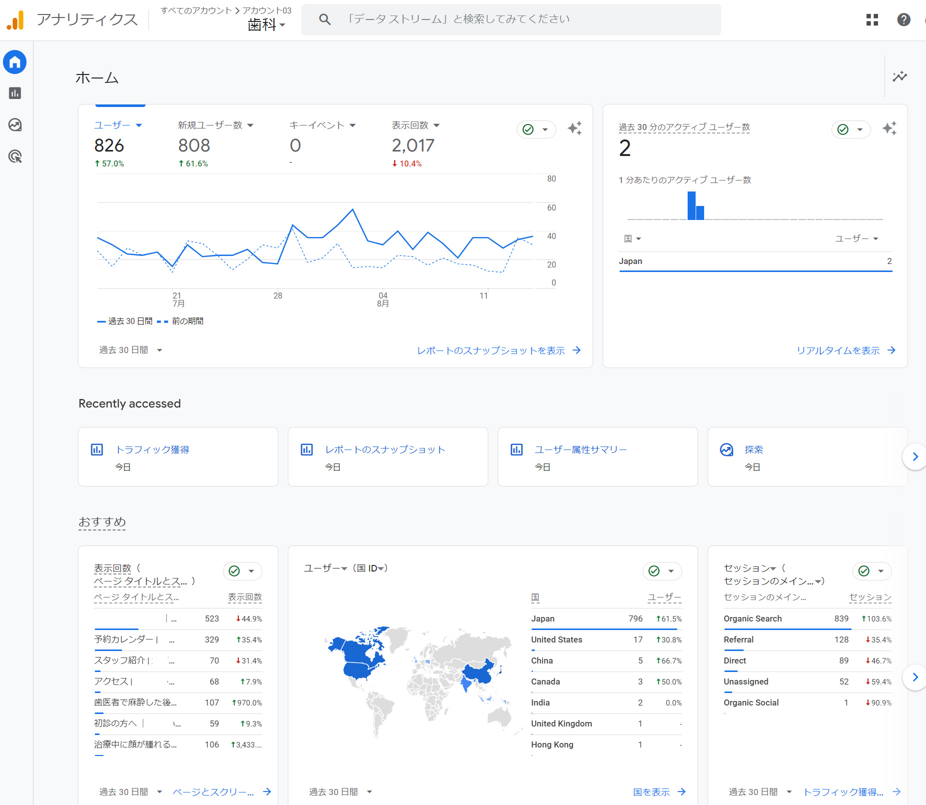 しいて言えば、GBPにも登録していないホームページが開業1ヶ月で800人以上の流入はけっこうスゴいんじゃないかな?って思います。もし、これを読む皆さんがすでに開業なさっているんであれば是非、ホームページの月間ユーザー数を確認なさって下さい。